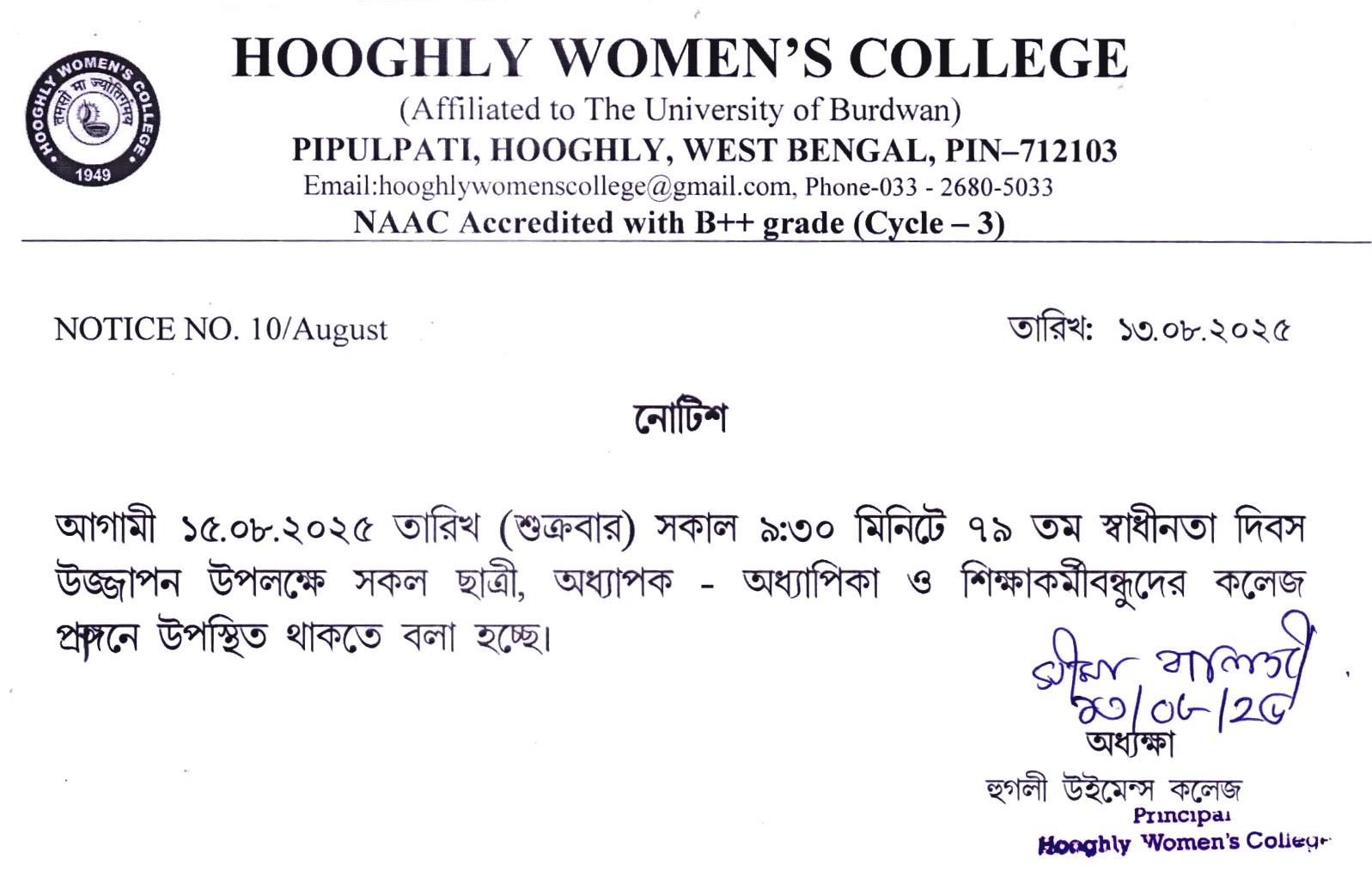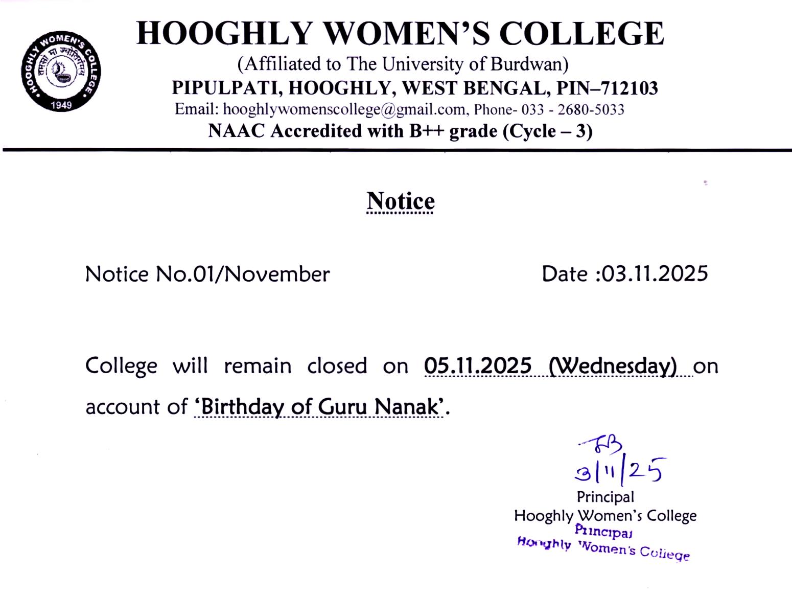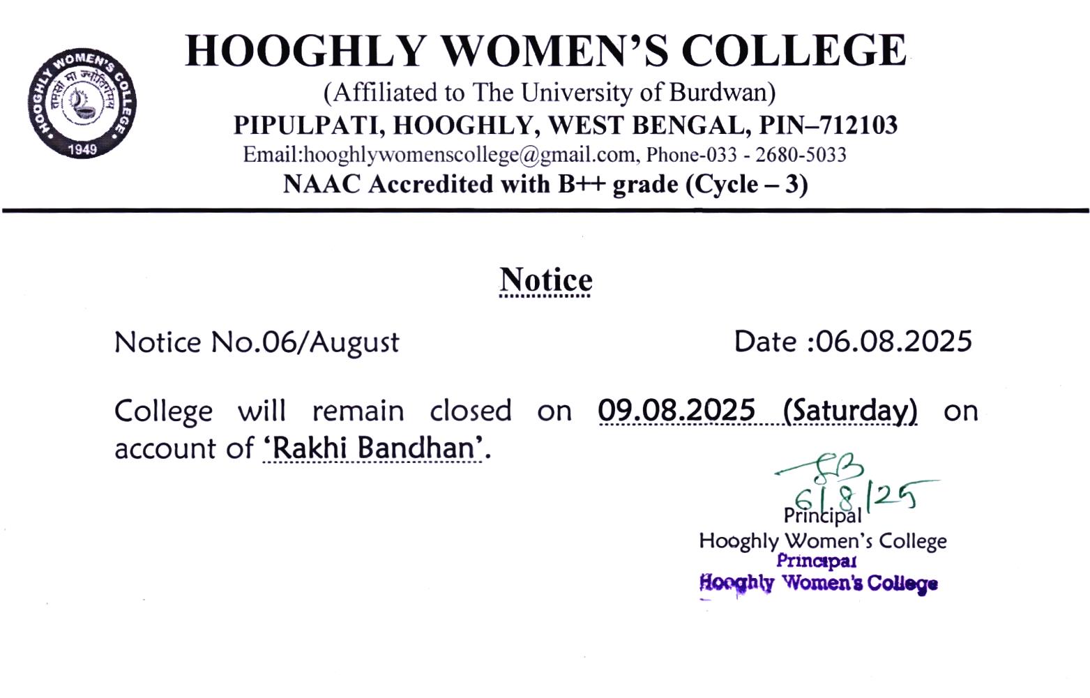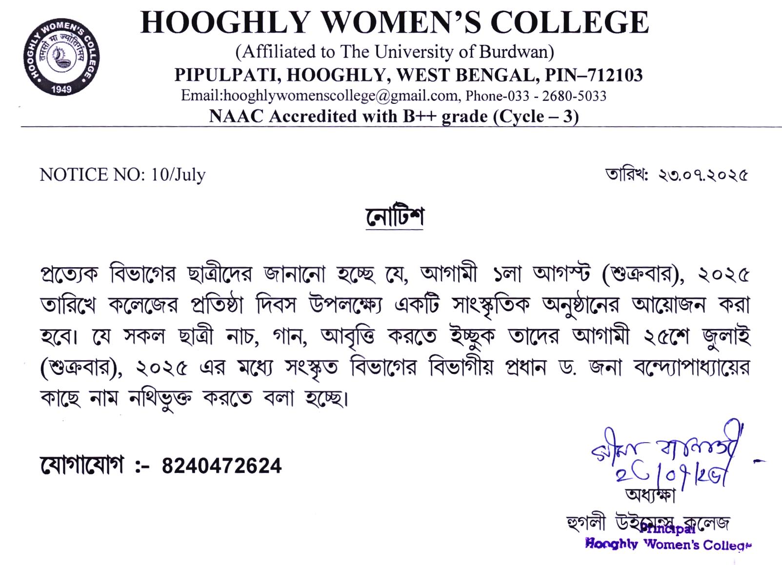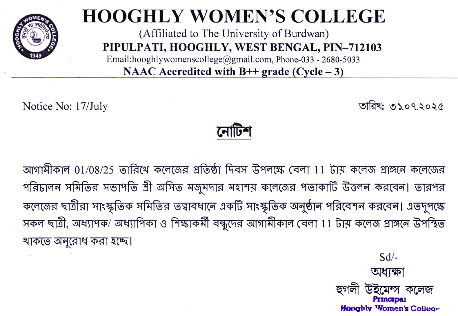 ----- Notification regarding college foundation day on 01.08.2025 |