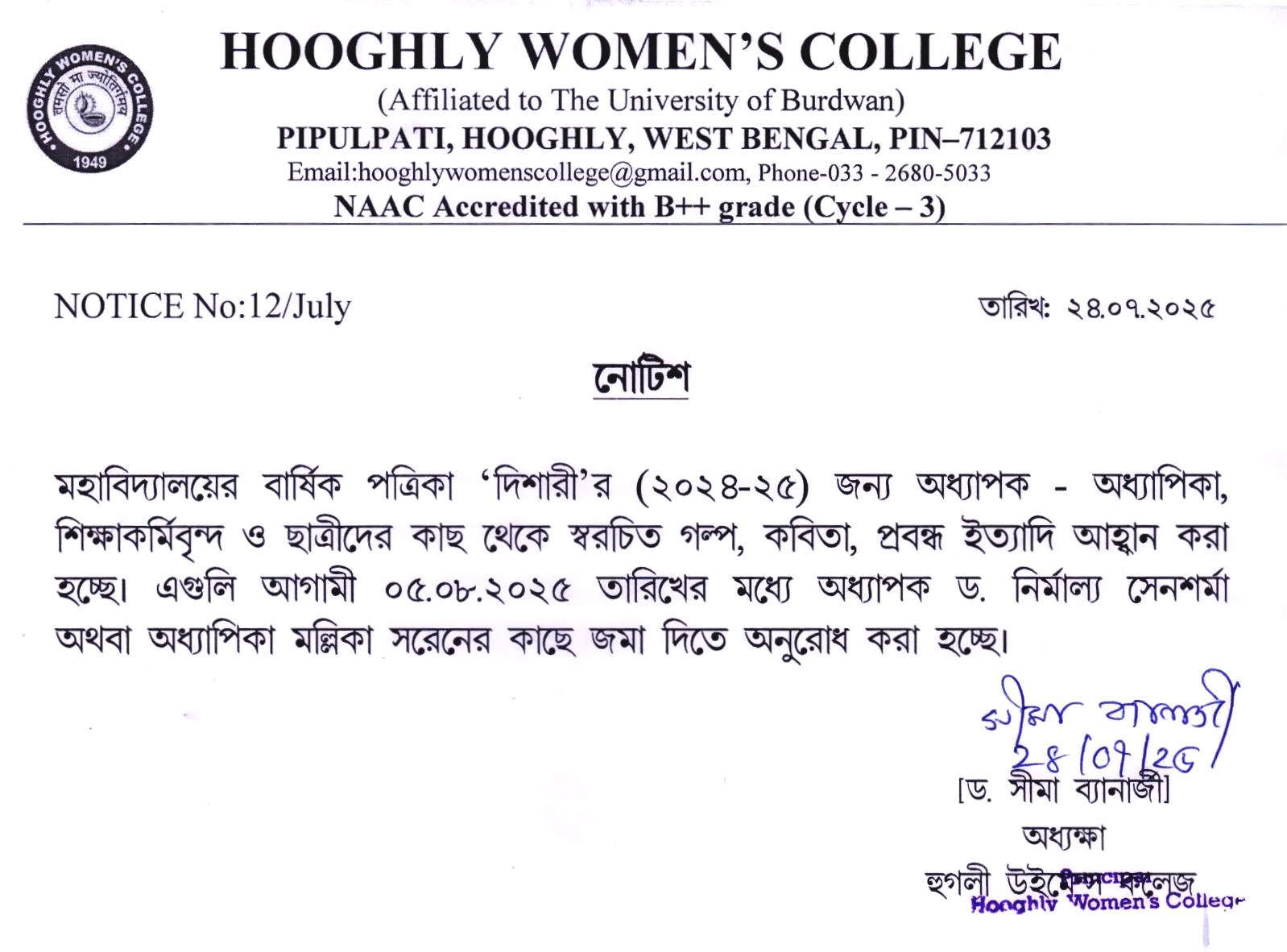 ----- Notification regarding participation in the annual college magazine 'Dishari' |