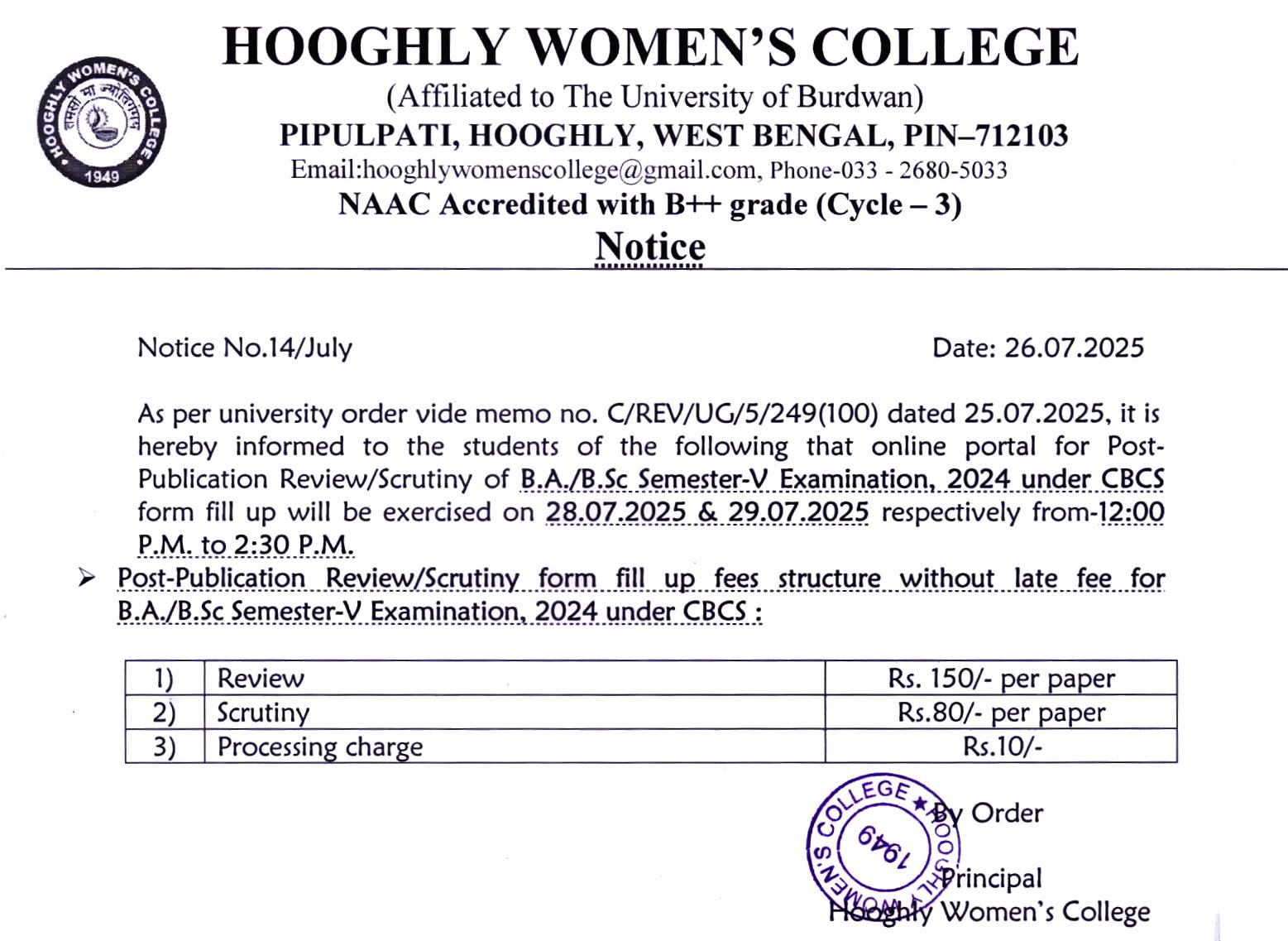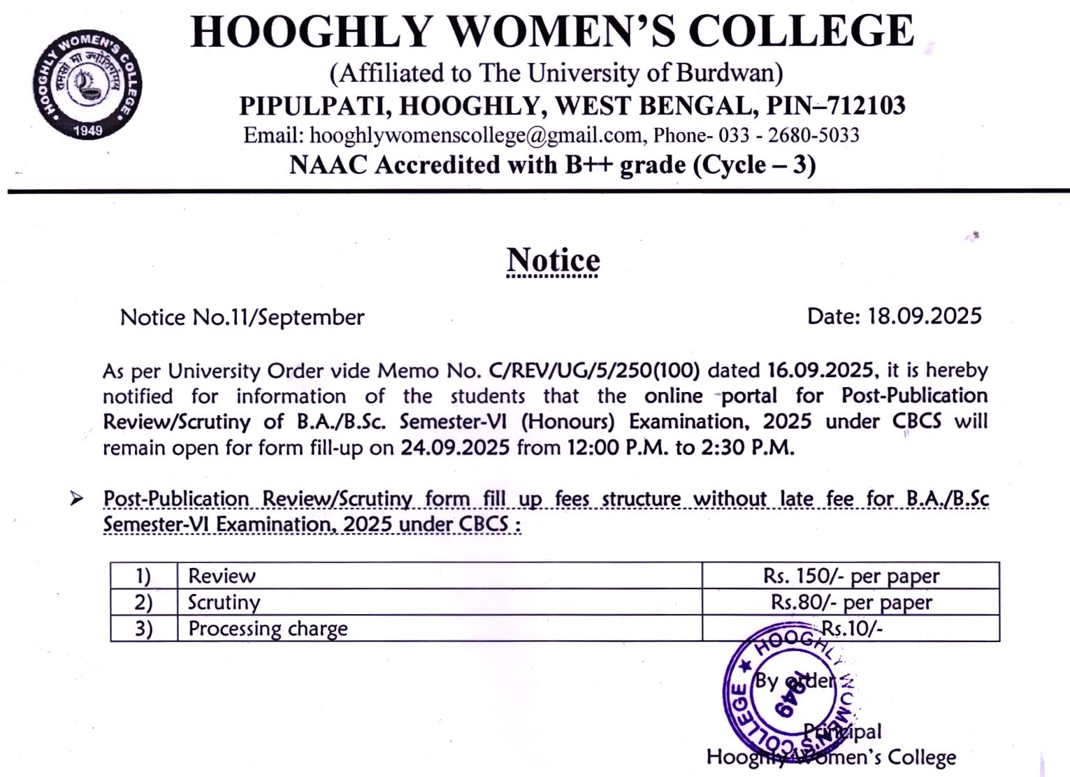 ----- Notification regarding CBCS Semester VI (Honours) Examination 2025 review/scrutiny |