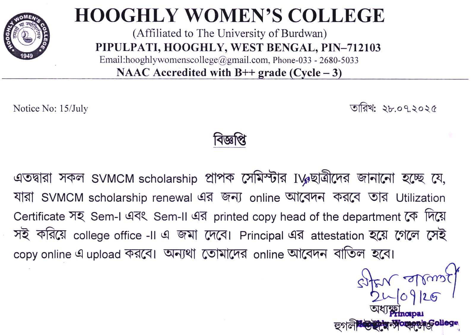 ----- Notification regarding SVMCM Scholarship for Semester IV,2025 |