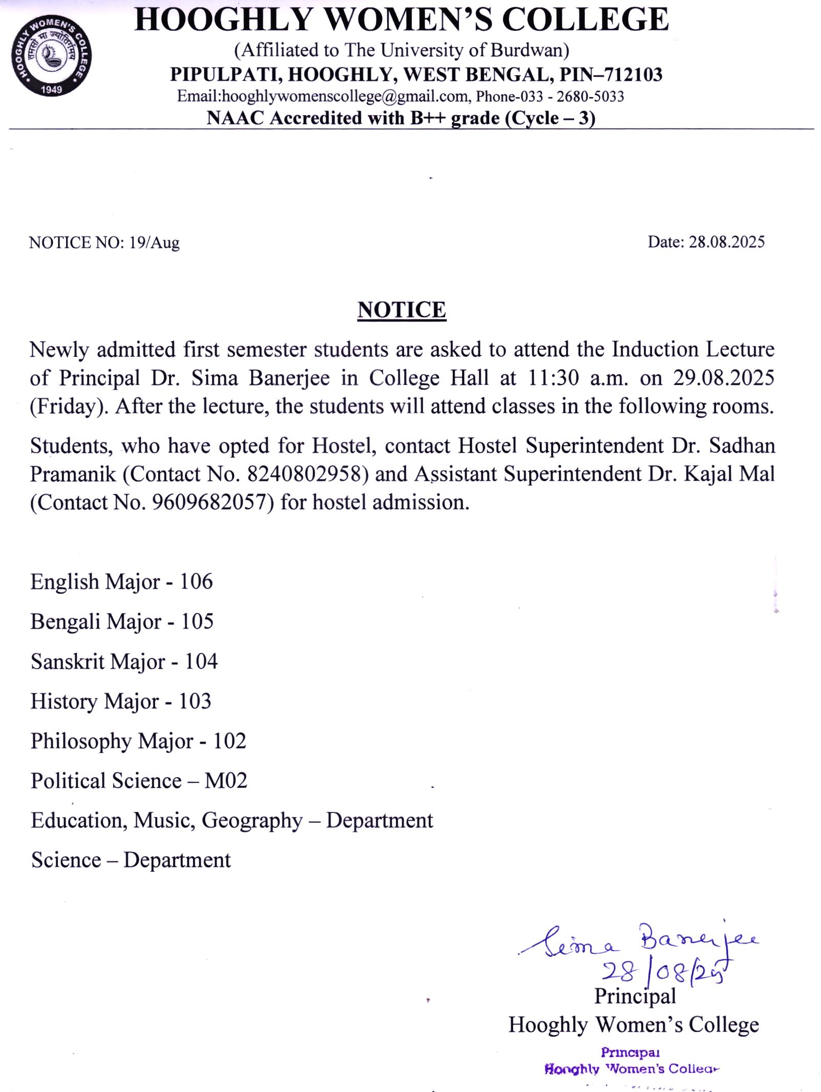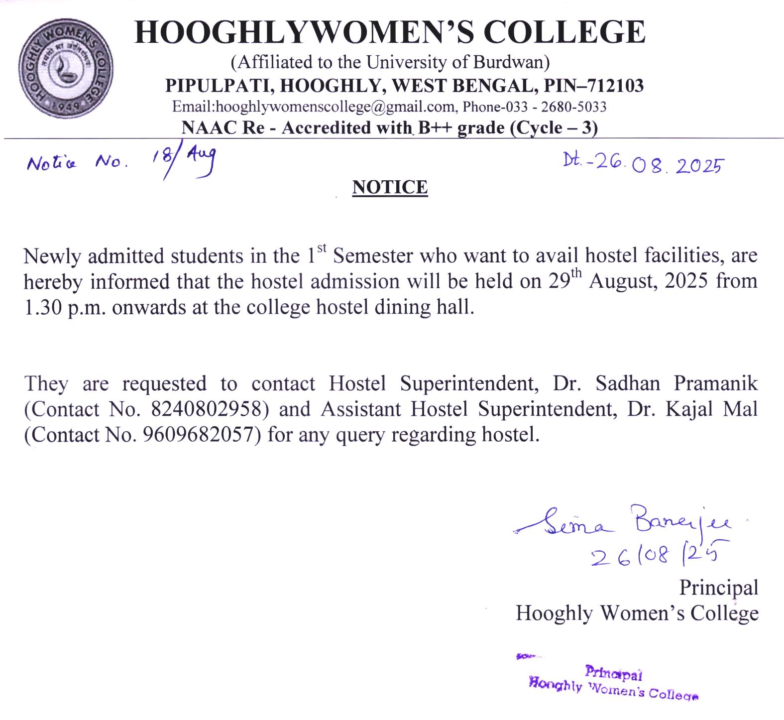 ----- Notification regarding Semester I,2025 hostel admission |