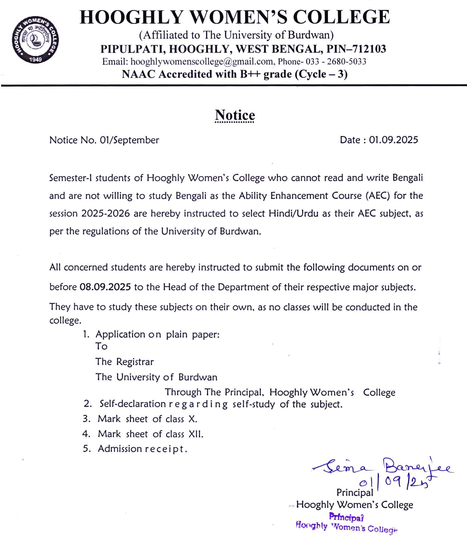 ----- Notification regarding Choice of AEC Subjects for Semester I, 2025 |