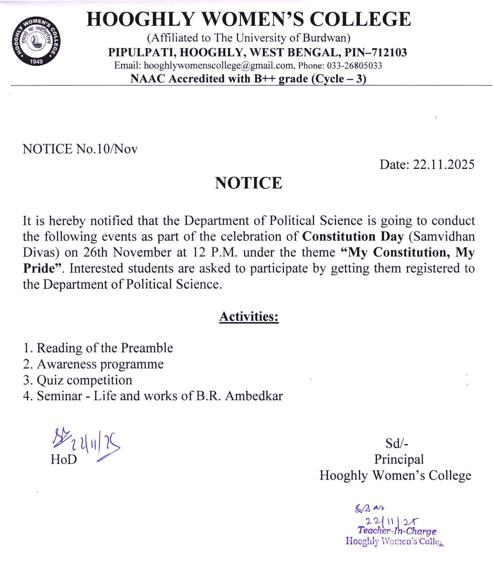 ----- Notification regarding celebration of constitution day |