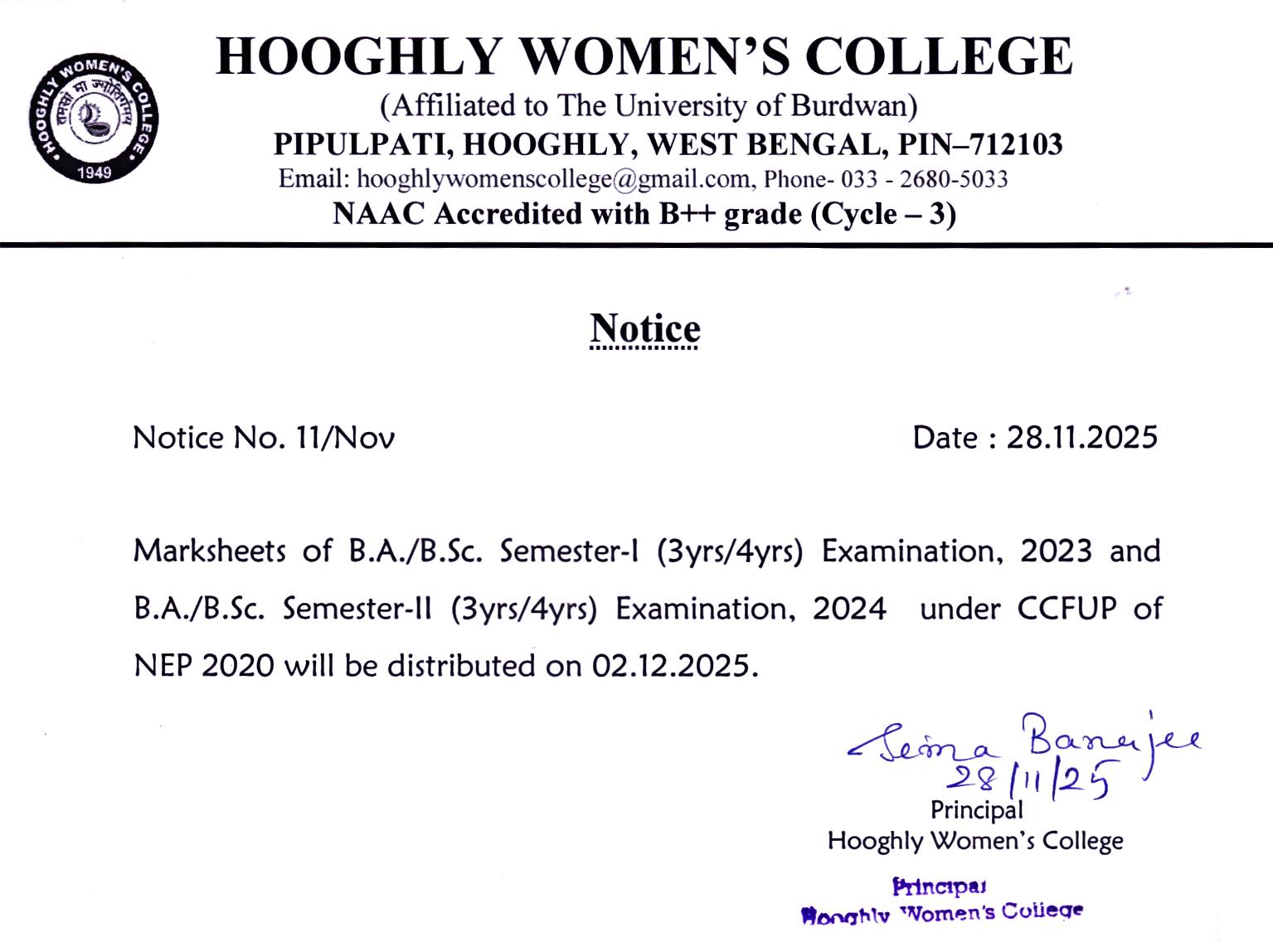 ----- Notification regarding distribution of NEP Semester-I,2023 & Semester-II,2024 marksheet |