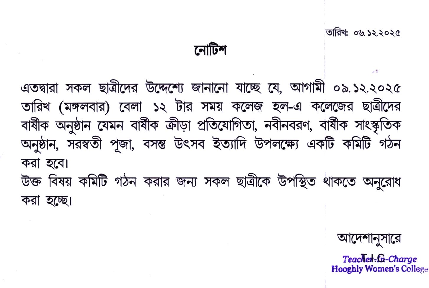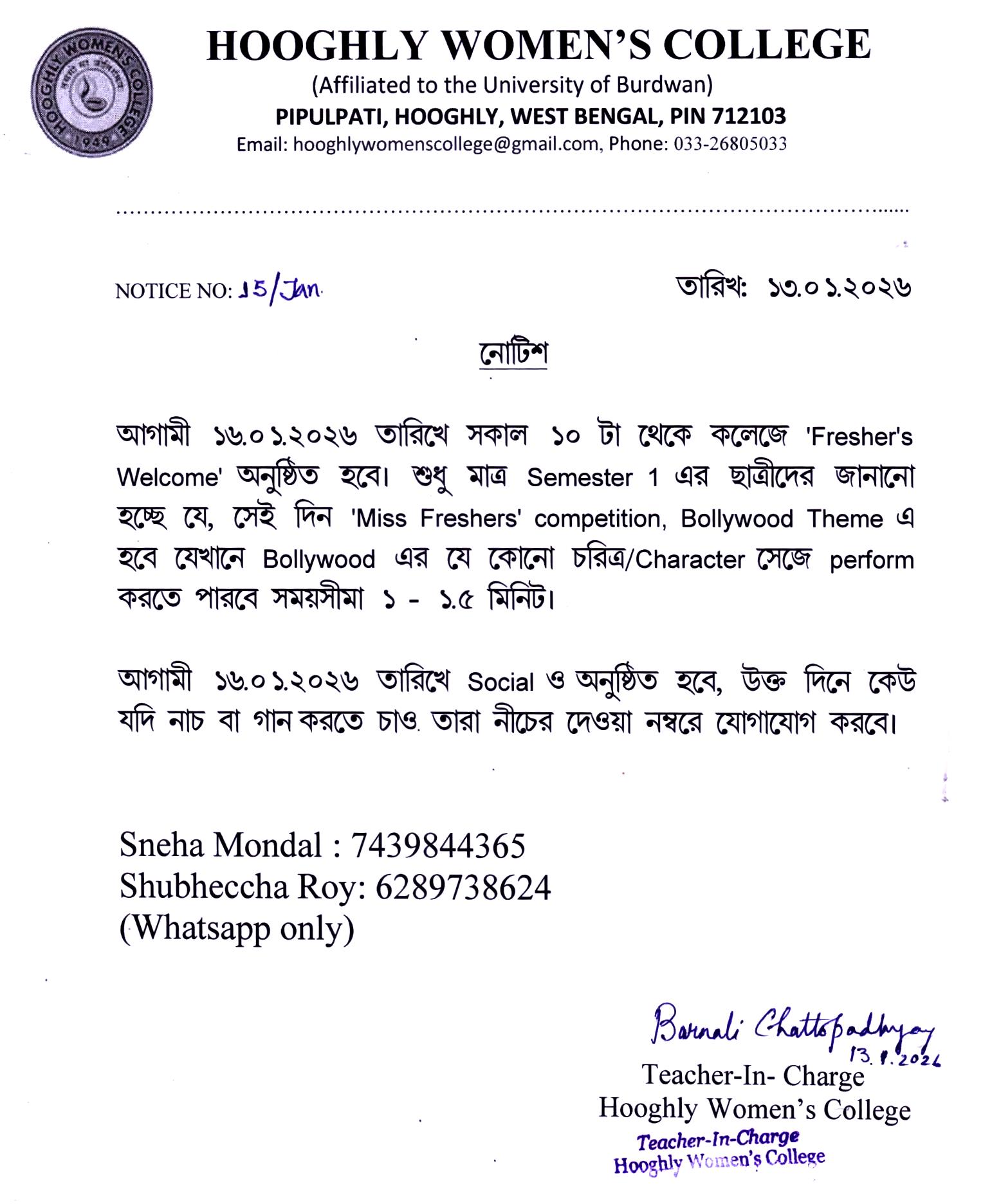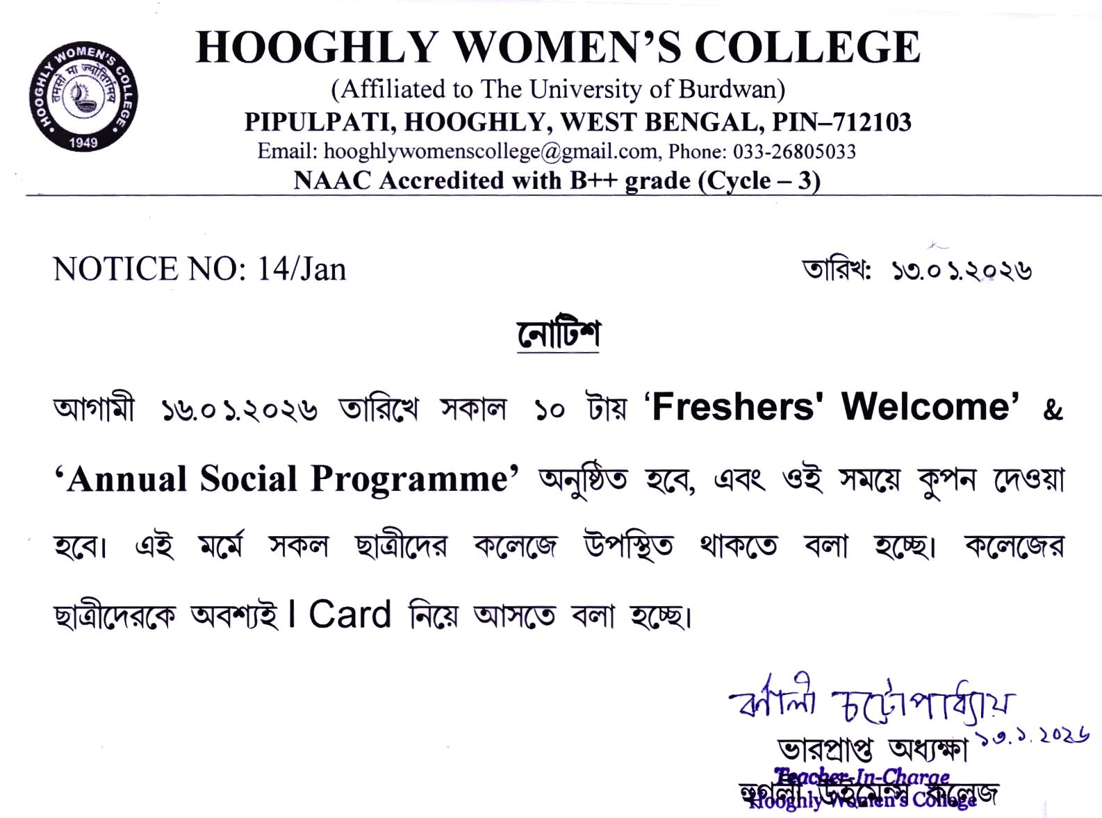 ----- Notiification regarding 'Freshers' Welcome' & 'Annual Social Programme' |