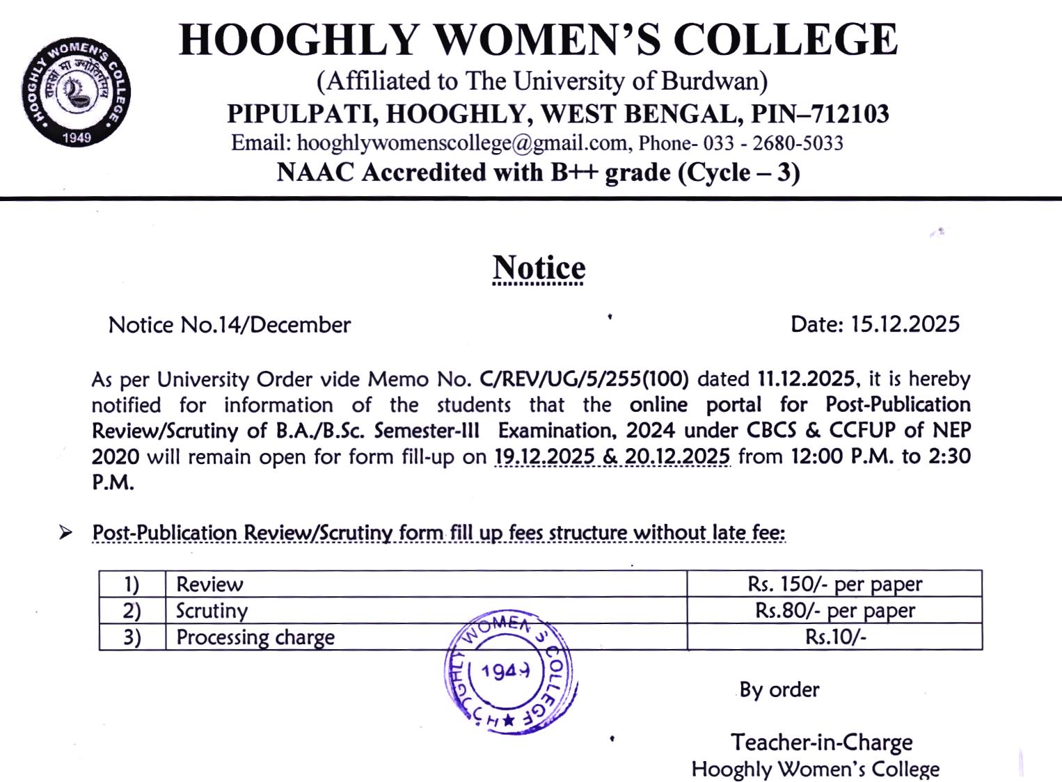 ----- Notification regarding review of B.A./B.Sc Semester III,2024 (CBCS & CCFUP of NEP 2020) |
