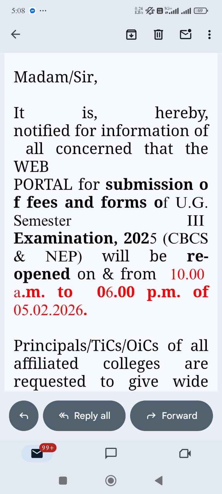 ----- Notification regarding re-opening of B.A./B.Sc Semester 5 Examination portal |