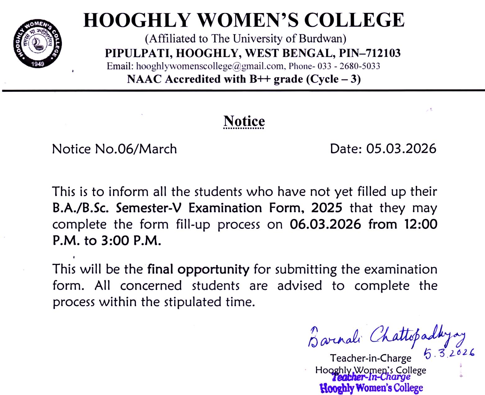 ----- Notification regarding UG B.A.(NEP/CBCS) Semester V Examination,2025 form fill up |